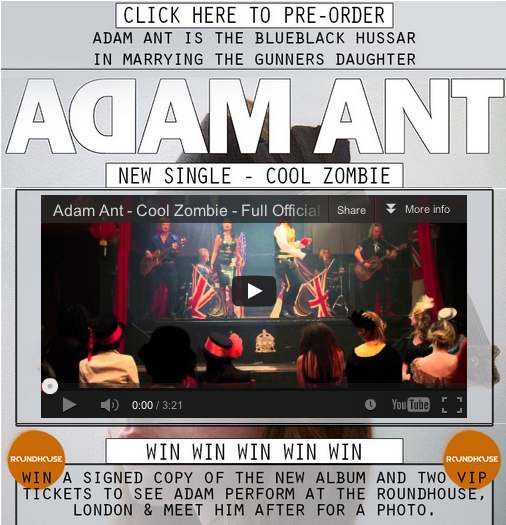 Click here to enter via Facebook: https://www.facebook.com/pages/Adam-Ant/69349615331?sk=app_291730397596392