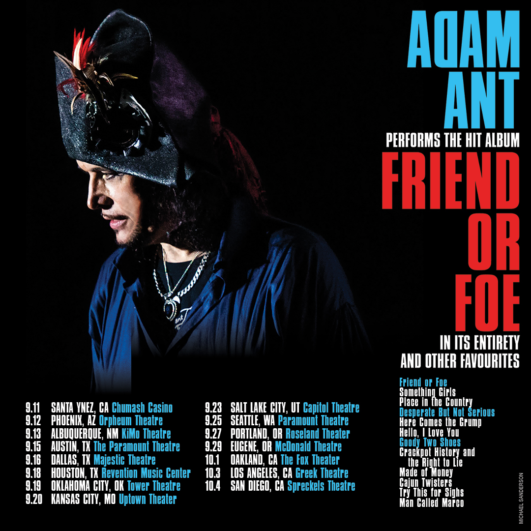 Adam is rescheduling the April/May 2020 North American Friend or Foe tour dates, which will now begin September 11th as follows: